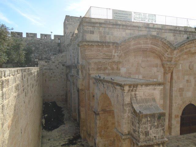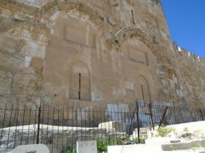 Wenn man sich dem Tempelberg von der Seite des Ölbergs aus nähert, gerät man auf einen muslimischen Friedhof, der das gesamte Goldene Tor weiträumig umgibt. Mit diesem Goldenen Tor hat es eine besondere Bewandtnis, denn Es ist es, durch das der Messias nach jüdisch-messianischer Lesart am Jüngsten Tag vom Ölberg aus in seine heilige Stadt schreiten wird um auf dem Tempelberg den dritten Tempel zu errichten. Aus Angst davor und zur Abschreckung der jüdischen Priester haben es die Muslime im 16. Jahrhundert zugemauert, um dem Messias den Durchgang zu verwehren. Der christliche Messias soll der Überlieferung nach am „Palmsonntag“ durch dieses Tor auf einem Esel reitend in die Heilige Stadt eingezogen sein. Nun aber fürchten die Muslime um ihre Vorherrschaft auf dem Tempelberg, wenn sich jemand diesem Tor nähert, denn er könnte ja der jüdische Messias sein und dieses Tor auf magische Weise aufbrechen, daher ist Nähern strengstens verboten, vor allem für Juden. Für einen abendländisch aufgeklärten Menschen sind diese Gedanken schwer nachzuvollziehen, aber hier in Jerusalem bilden sie eine handfeste Faktizität, auf die sich ganze politische Systeme stützen.