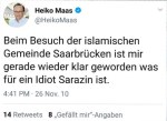 Es ist ein Treppenwitz der Geschichte, dass nun der maßgebliche Urheber des Netzwerkdurchsetzungsgesetzes (NetzDG), geschäftsführender Bundesjustizminister Heiko Maas, selbst Opfer seiner Zensur geworden ist. Vermutlich wird ihm das keine Lehre sein. Wenn juristische Entscheidungen auf Laien abgewälzt werden, anstatt, dass sie von einem ordentlichen Gericht getroffen werden, darf man sich zu Recht fragen, ob unser Rechtsstaat nun völlig auf den Hund gekommen ist.