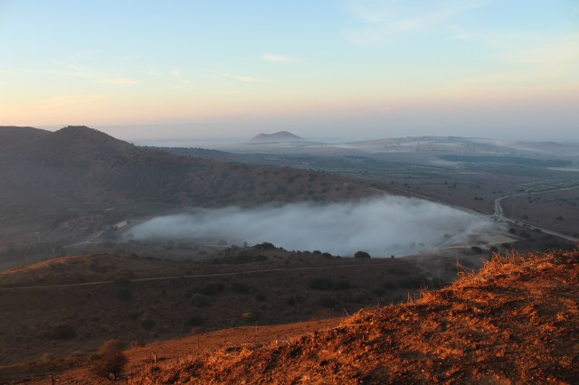 Derzeit genieße ich es, in der Frühe hier im Golan auf einem der Vulkankegel zu sein und den ein oder anderen Sonnenaufgang zu beobachten; es ist mehr als nur ein romantisches Bild. lch kann dem Golan gewissermaßen beim Arbeiten zusehen, wie er seinen biblischen Auftrag erfüllt: Wasser zu spenden für Zion. Seine Vulkane liegen mit ihren Gipfeln alle zwischen 1000 und 1300 Metern Höhe, etwa so hoch wie der Vesuv.